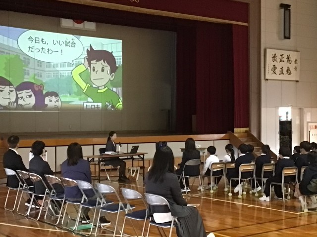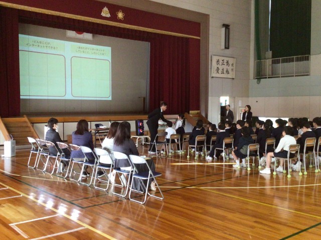 5限目については、小学校は竹下ICTサポーターによるデジタルモラル教育、中学校は道徳、英語、進路説明会に分かれて行いました。