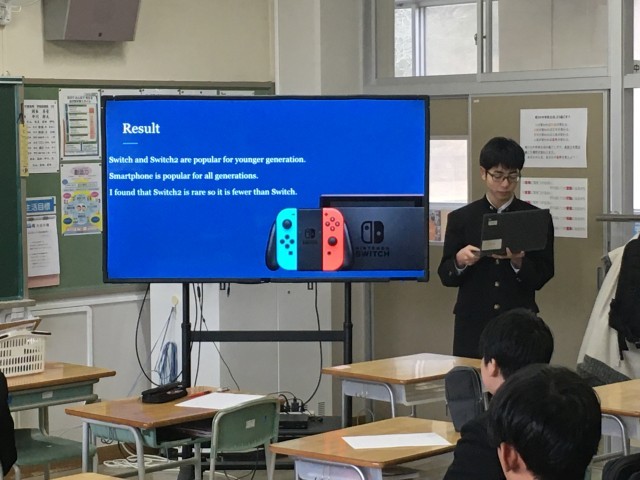 また、小学校6年生と合同の英語の授業では、中学校2年生が、おすすめに関する調査結果を英語を用いてスライドを作り、発表しました。今学期もたくさん学びました。また来年もがんばりましょう。良いお年をお過ごしください。