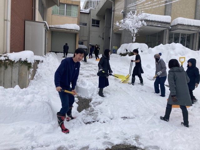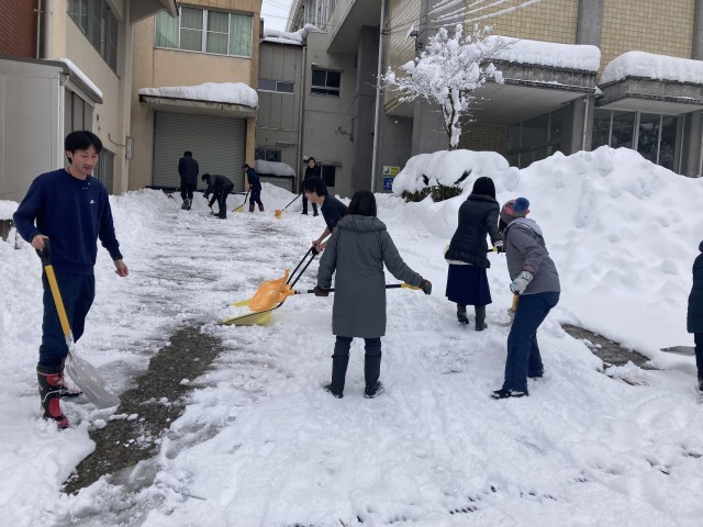 みんなで除雪を朝からしています。みなさんの安心、安全確保を第一に考え、教職員みんなでがんばっています。