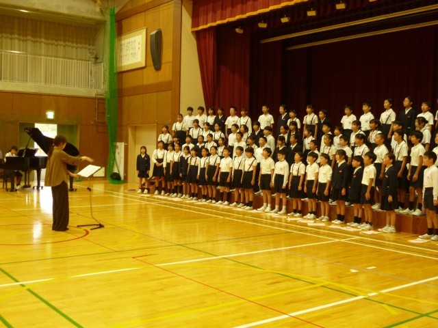 連休明けの体育館からは5年生の歌声が響いてきます。