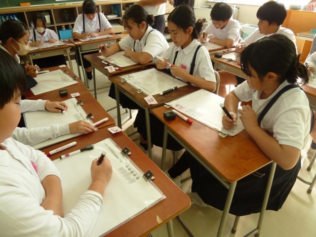 5年生は各クラスが2つのグループに分かれての算数少人数授業を行っています。
