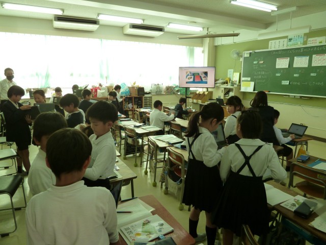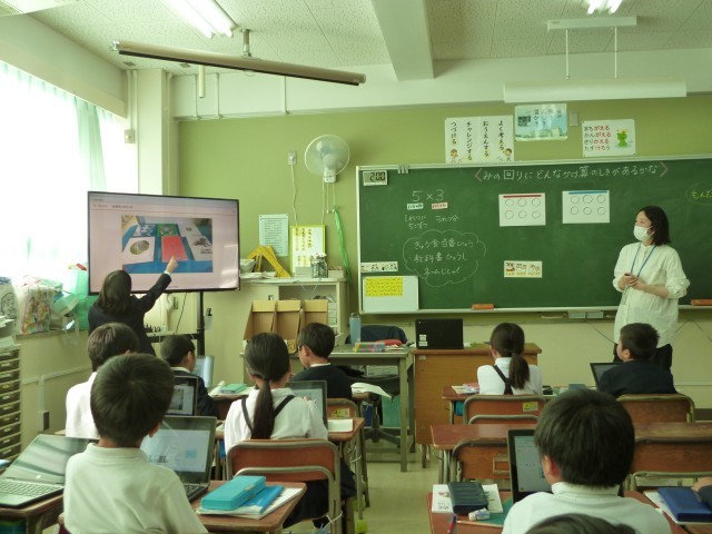 身の回りのかけ算を探して写真におさめ、友だちと交流します。
