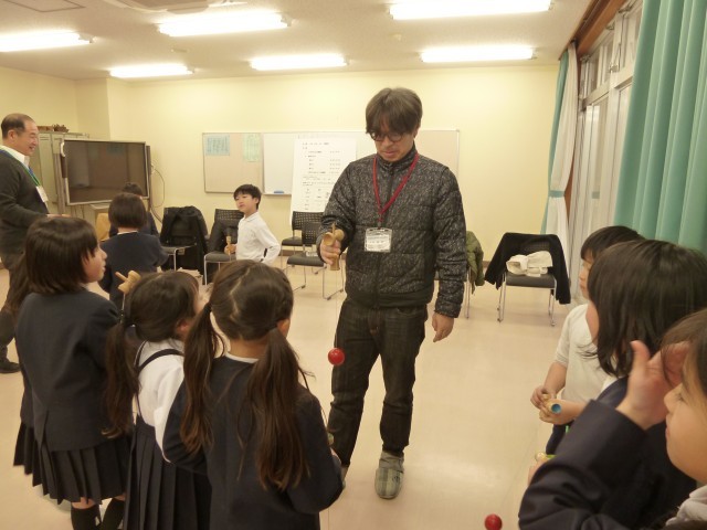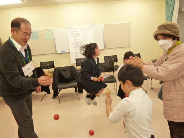 学童の子どもたちがけん玉が上手で、「昔遊びの先生」が子どもたちに教えてもらう場面もあり、