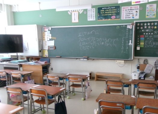 節電だけでなく、教室中が整頓されています!黒板のお知らせも素晴らしい!