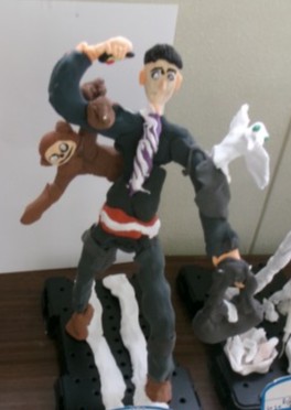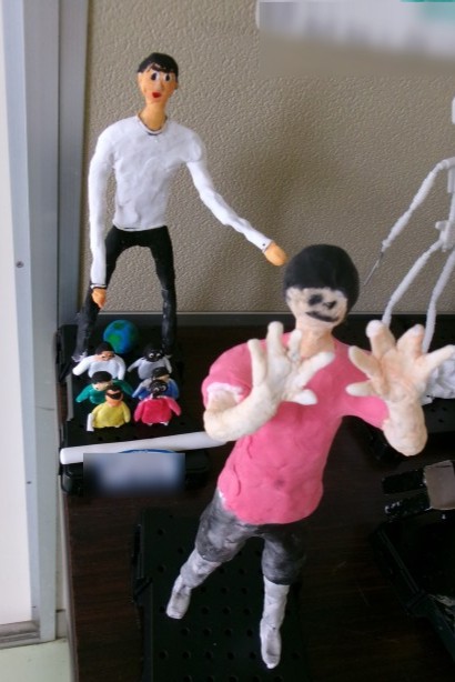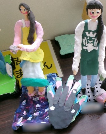 未来の自分を思い描いて針金と紙粘土で作成している「未来のわたし」という作品!