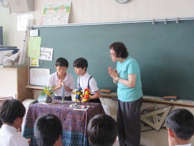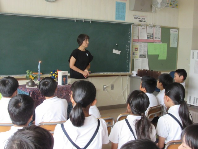 本日は、4年生で学級ごとに図書ボランティアさんによる「お話会」がありました。朝の短い時間の読み聞かせとは違って、国語の時間1時間たっぷり使って行われました。4年生の内容は、詩「ぜひ」「あつい日」絵本「このよでいちばんはやいのは」お話「エパミナンダス」「北斗七星」「ゆうかんな靴直し」でした。詩では、いっしょに音読をしたり、お話の語りでは、お話の世界をしっかりと想像し反応したりしながら楽しんで聞いていました。2学期中に、他学年でも実施予定です。志村さん、澤崎さん、貴重な時間をいただきありがとうございました。