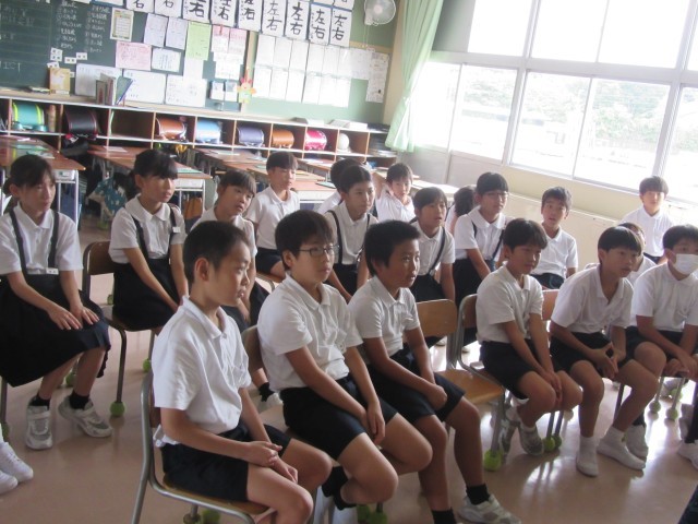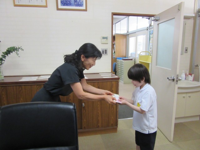 昼休み時間には、1ヶ月に1回行われている読書の達人表彰がありました。今日は、高学年の達成者が多く、理由を尋ねると「4月に、いつ頃達成するのか目標を持った」と話してくれました。読書にも自分で目標を持って取り組んでいることがとても嬉しかったです。本校では、学年ごとに「読書の達人おすすめの本」が60冊~100冊程あり、その中から1~4年生は30冊、5.6年生は15冊読んだ人が表彰されています。毎月の図書だよりに達成した人が掲載されています。