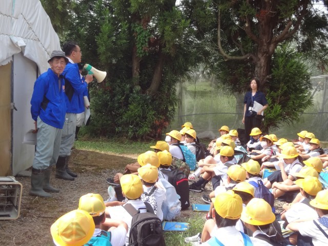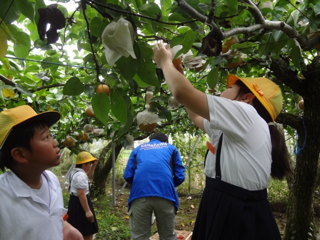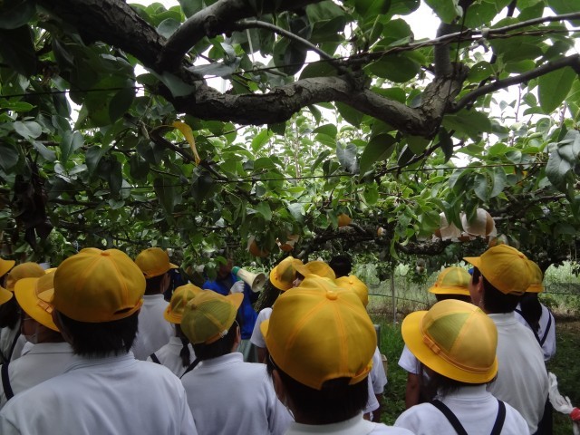 5年生は、農業体験学習で、梨収穫体験と、レンコン畑の見学、そして金沢農業振興協議会の方々との学習会を行いました。農家さんから梨の収穫のコツを教えていただき、自分の手で大きな金沢なしを収穫することができました!また、JA金沢市加賀れんこん集出荷施設の見学や、金沢梨の食べ比べなどを通して、農家さんの工夫や金沢の食文化について詳しく知ることができました。本日は、本当に貴重な経験をすることができました。お世話いただいた関係者の皆様、ありがとうございました。