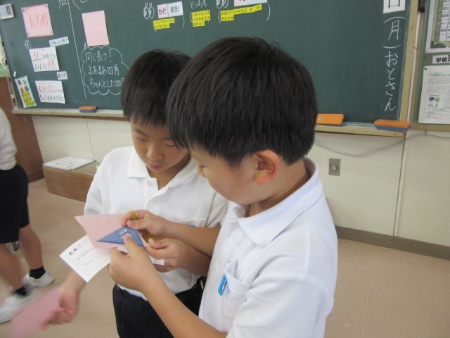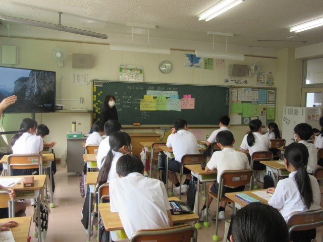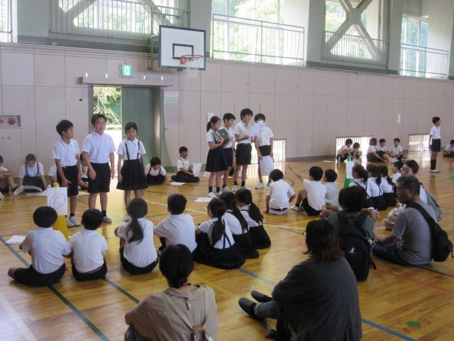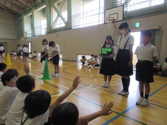 2年生は、算数「さんかくやしかくの形をしらべよう」の単元、「どんな四角形かな」という課題で正方形について学び合っていました。4つの角がみんな直角、4つの辺がみんな同じ」ということをいろんな方法で調べ伝え合っていました。4年生は、学年コミュニティーで、総合的な学習で調べまとめたことを、3年生に伝えていました。クイズ等を入れながら工夫してまとめたものを、緊張する状況の中でも一生懸命に伝えていました。6年生は、身体計測の時間に保健指導を養護教諭の熊木先生がしていました。本日のテーマは「ウェルビーイング」。心のしあわせのための4つの因子を教えていただき、1人1人が自分にとっての4つのこころを、温かい雰囲気の中で考え、発表し合っていました。そして、今日は9月1日からスタートした教育実習生の最終日でした。お昼の放送で3名の実習生から最後の挨拶がありました。3週間、お互いにいい時間を持つことができました。今後のご活躍を期待しています。お世話になりました。
