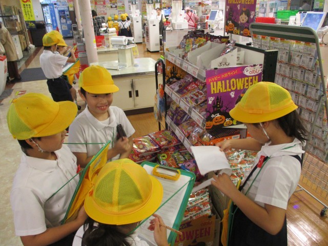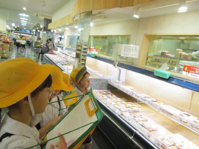 3年生は、社会科の「店ではたらく人」の学習で、アルビス泉ヶ丘サンピア店に見学に行きました。店内をグループで見て回りながら、商品の並べ方や管理の仕方、お店での取組など、様々な工夫を見つけることができました。また、店長さんに説明をしていただきながらバックヤードも見学させてもらいました。たくさんの質問にも答えていただき、3年生はお店の工夫やお店の方々の思いなどについて学ぶことができました。お忙しい中、対応していただいた泉ヶ丘サンピア店店長様、ありがとうございました!