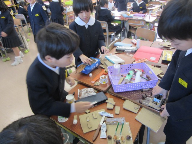 1年生は、生活科の学習で「6年生が楽しく笑顔になるお店を作ろう」というめあてに向かって、グループで協力し合いながらお店の準備を進めています。子ども達は、わくわくしながら自分たちでがんばっています。3年生は、2年生に発表するために、学年コミュニティの準備を進めています。発表の方法をグループごとに工夫し、より興味を持って聴きたくなるようにがんばっています。5年生は、家庭科のミシンの学習でエプロンづくりをしていました。2時間でどこまで進めるのか、課題を明確にし、友だちとも助け合いながら作っていました。ミシンは5年生でスタートしたばかりとは思えない雰囲気でとても落ち着いて取り組んでいました。保護者ボランティアにもサポートいただき大変助かっています。