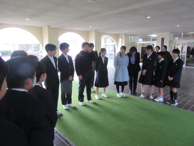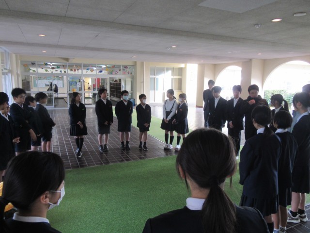 本日朝のあいさつ運動は、野田中校区4校一斉に実施されている「スマイル4」でした。野田中から、5名の卒業生(今回は2年生)が長坂台小学校に来てくれ運営委員会のメンバーと一緒にあいさつをしてくれました。普段から元気いっぱいの運営委員のあいさつですが、中学生が加わることで、また刺激を与え合うことができたようです。終わった後のふりかえりでは、中学生からも言葉をもらい真剣に耳を傾けていました。中学生の皆さん、朝の忙しい時間帯に来てくださってありがとうございました!