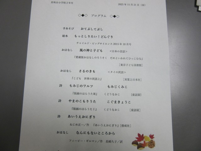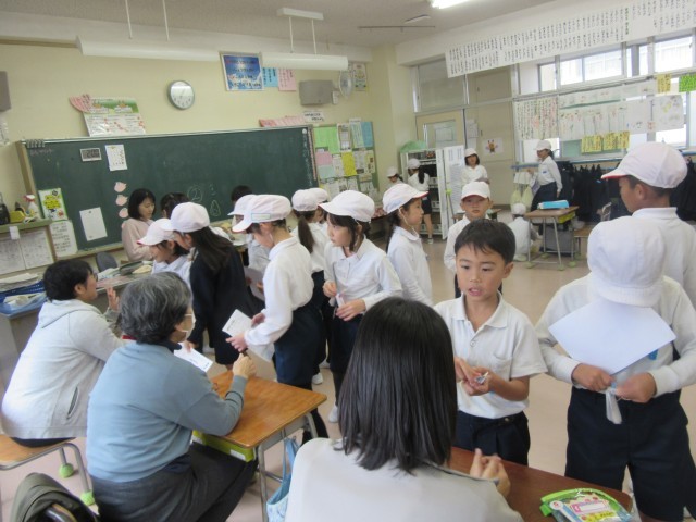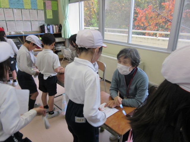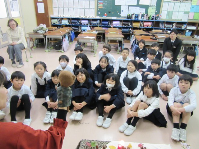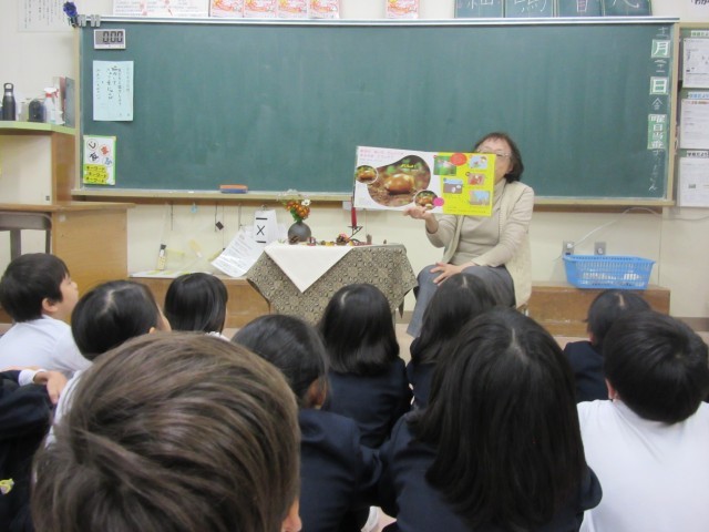 2年生は、図書ボランティアさんによるお話会が各クラス1時間ずつ実施されました。今年度は、学年に応じた内容で全学年実施しています。2年生の内容は写真の通りです。普段の生活の中では使わない言葉が出てきたり、想像したりするものもあり、難しいかなと思われる内容でも、子ども達は真剣に耳を傾けながら楽しんでいました。また、昼休み時間には、今算数でがんばっている九九を、地域ボランティアさんに聞いてもらっていました。教員だけでなく、地域の方のお力をお借りでき子ども達も嬉しそうにがんばっていました!