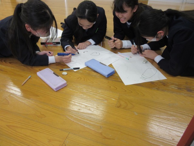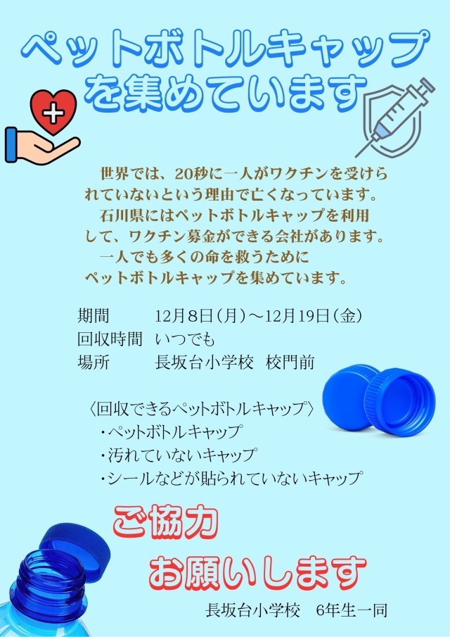 6年生の取組の中の1つであるペットボトルキャップの収集に関しては、ポスターを作成し、地域の店舗や施設等に協力を依頼し掲示していただくそうです。よりたくさんの方に知ってほしいということで、お知らせをHPにも掲載してほしいとお願いに来ました!また、昼休み時間のマルテでは、ペットボトルキャップの収集箱作り等を楽しんでいました!