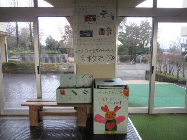 6年生の取組が本日からスタートしました!玄関前ピロティやるんるん坂前にポスターや回収箱を設置しスタートしました。今日からということをしっかり覚えていて、準備しておいたキャップや文房具を持参してくる子もいました。また、6年生が、地域の施設にお願いをしに行ったら、早速大きなゴミ袋いっぱいのペットボトルキャップをいただいたそうです。学校だけでなく、地域の方々の力の大きさを実感したのではないでしょうか。