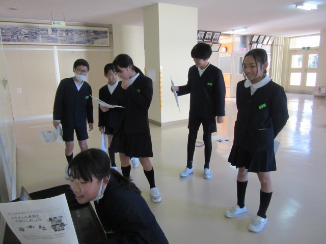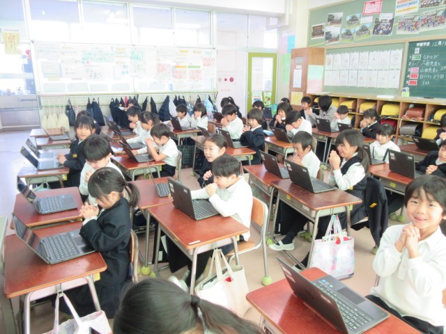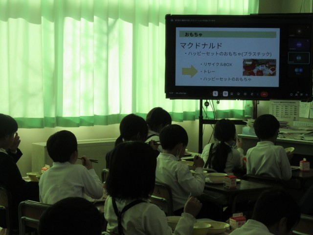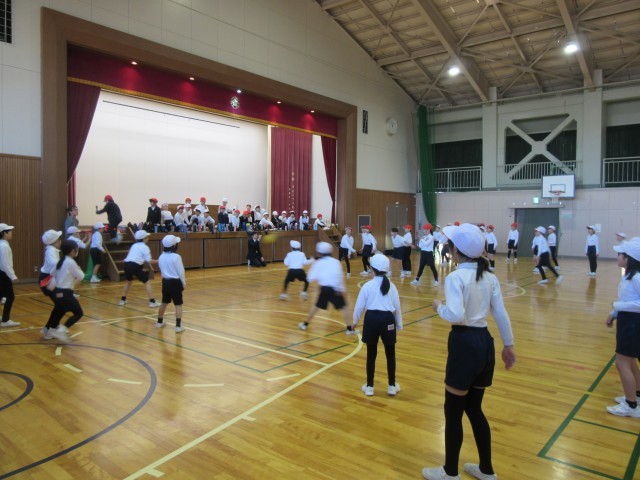 1年生は、英語インストラクターの八田先生と一緒に英語活動をしていました。課題は「えいごでクリスマスケーキをつくろう」です。クリスマスに関係のある言葉のビンゴを楽しみながら、発音を教えていただき、正しい発音を意識して元気いっぱいに英語を言いながら、わくわくドキドキの英語の時間でした。3年生は、2学期の学年レクをしていました。実行委員を中心に、おにごっこや○×ゲーム、ドッジボールを楽しんでいました。お昼の放送では、6年生が、今自分たちが企画してペットボトルキャップや文房具を集めていることの他にも、リユースやリサイクルの方法があること、どこに持って行けばいいのか等の情報を全校に向けて発信していました。この6年生の取組を通して、1人でも多くの人の「資源を大切にする意識」や「自分たちのできることで世界の人を救うという意識」が高まればいいなと思います。