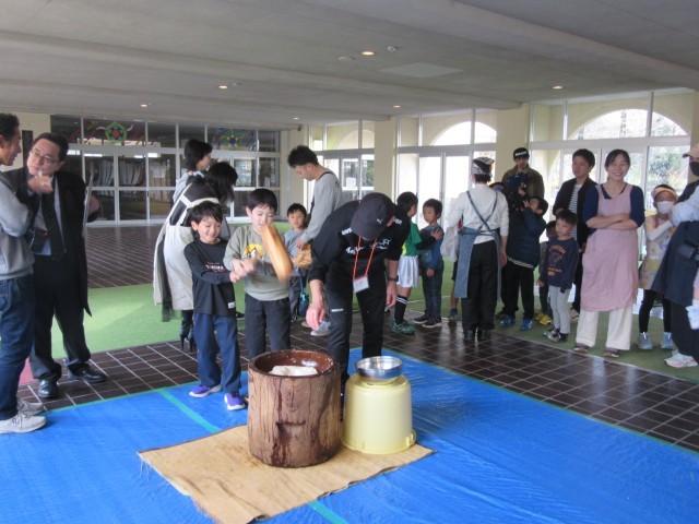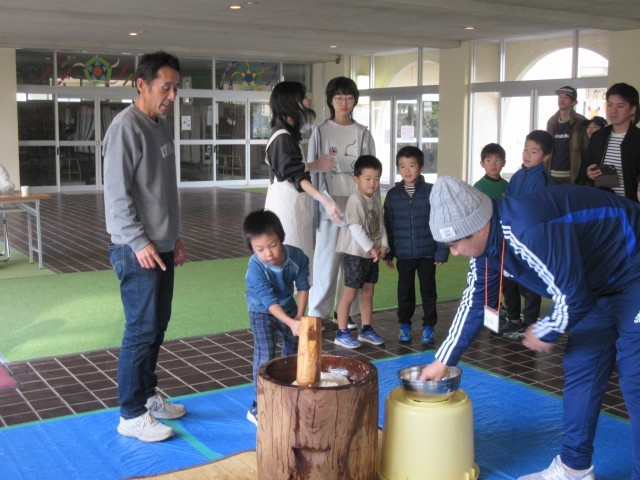 21日(日)、今年も子供たちお楽しみの「もちつき&スポーツ」の会が、「若大将集まれの会」の主催で実施されました。体育館では、長坂台クラブさんが、ボール投げゲームやボールとりゲーム、ボール打ちゲーム等を楽しめるようにわきわくする空間を準備してくださっていました。プレールームでは、思い思いにバドミントンで汗を流していました。そして、玄関下ピロティーでは、お餅つき!若大将集まれの会のメンバーやお手伝いの保護者の方々が、子供たちの経験のために汗を流してくださっていました。お世話いただいた皆様、本当にありがとうございました!