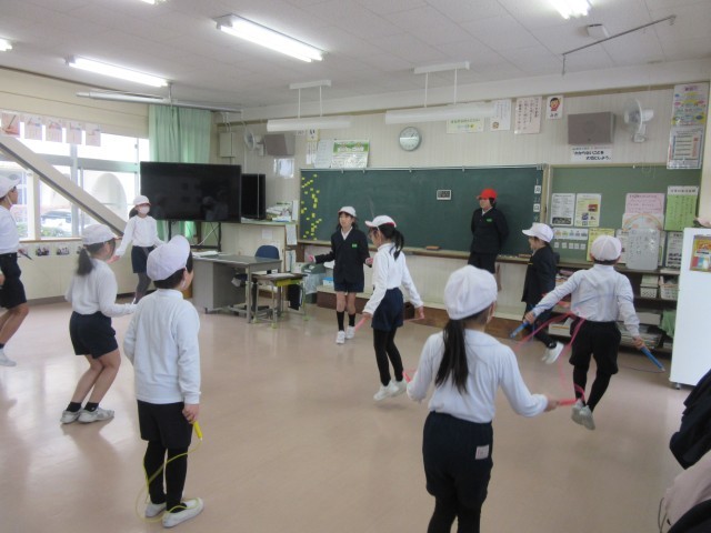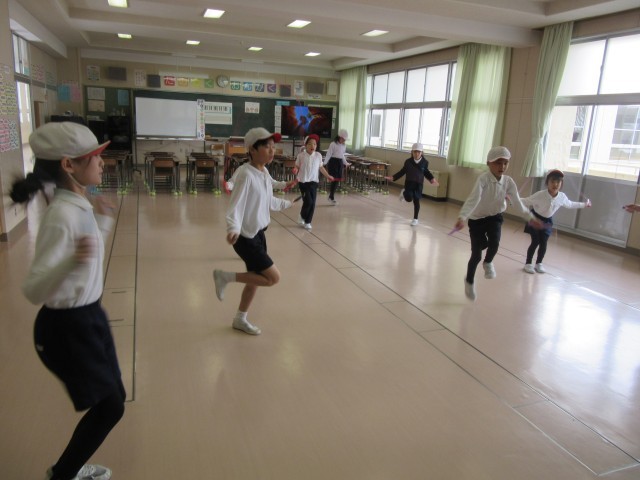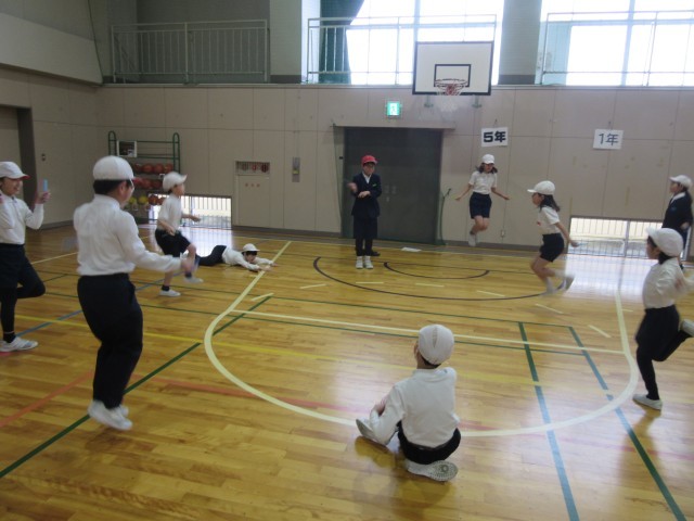 年間6回実施している昼休み時間の「わくわくタイム」の中の5回目、「なわとびわくわくタイム」が実施されました。異学年交流の中で、学年に応じた役割を果たしながら仲良しの輪を広げています。今回も6年生が企画してくれました。レベルアップゲーム、たいきゅうゲーム、リレー、へびとびなどなど、子供たちは様々な遊びを工夫し楽しんでいました。