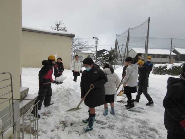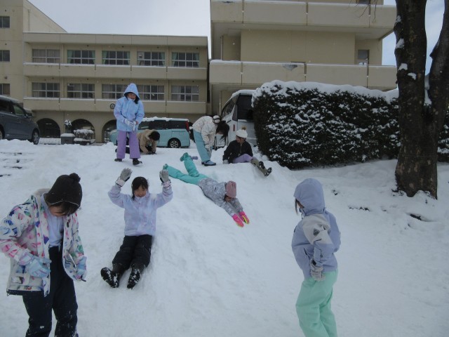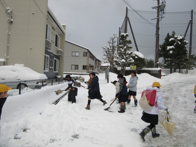 とうとう雪が積もりましたね!学校はるんるん坂を中心に、地域の吉田様が朝早くから除雪をしてくださるので大変助かっています。また、機械では届かないところは、5、6年生が曜日ごとに当番を決めて除雪をしてくれています。今日は5の1の児童ががんばってくれていました。本当にありがとう!また、歩道が歩きにくくないように除雪をしてくださったり危なくないように見守りをしてくださった保護者や地域の皆様、心より感謝申し上げます。おかげ様で、怪我や事故もなく子供たちは無事に学校に登校することができました。授業中や休み時間は、新雪の上を、歓声をあげながら遊ぶ児童の姿も見られました。雪国の醍醐味ですね!今後の雪の状況に私たち大人はドキドキしています。