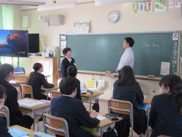 6年生は英語の時間に、野田中ALTのチョンジョン先生との会話での交流体験をしました。まずは自己紹介。それが終わったらジョン先生からの英語の質問に英語で答えるという交流タイムでした。1つ答えたら付け加えて関連した質問も!あったかい雰囲気の中、どの子も一生懸命に考え答えていました。