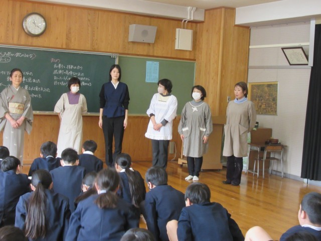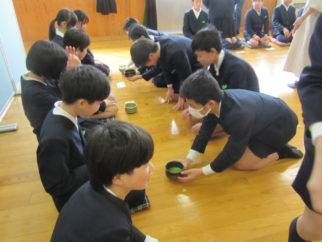 6年生は、卒業茶会が開かれました。まずは、金沢における茶道や和菓子について教えていただきました。利休のお茶の心についても丁寧に教えていただき、自分の生活や行動と結びつけて考えました。お茶の歴史や心を教えていただいた後は、お茶をいただいたり運んだりする経験をせてていただきました!笑顔いっぱいのゆったりとした満たされた時間を過ごすことができました。お世話いただきました6名のゲストティーチャーの皆様、ありがとうございました!