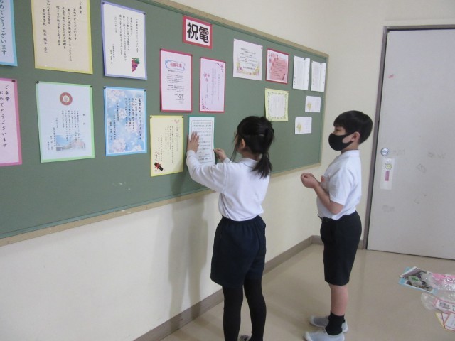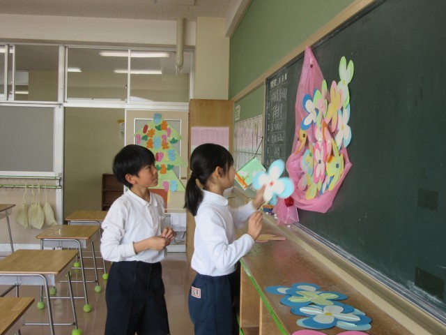 明日の卒業式に向けて、5年生が準備をしてくれました。今年の5年生の人数は、6年生の3分の2しかいません。そんな中、5年生は進んで動き、一人2人分は働いてくれました。6年生のことを思い、何をしたらいいのか考えながら動く姿に、6年生への心の準備がしっかりと整っていることを感じました。5年生、本当にありがとう!