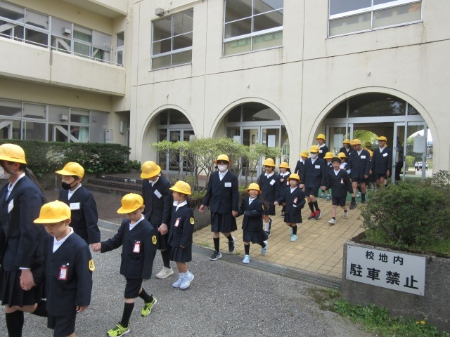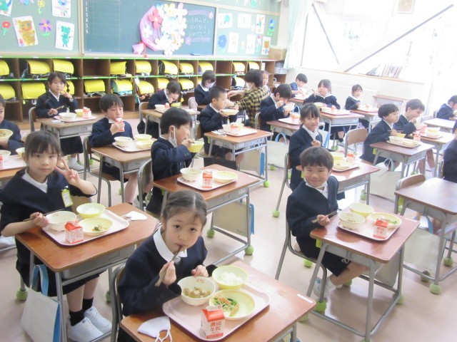 今日の2限目は、6年生が企画した「1616(いろいろ)仲良し大作戦」が1年生と6年生で行われました。学校のお隣のみはらし公園で、ペアや3人組で手をつないだ1年生と6年生が思い思いにおしゃべりしながら、のんびりとした時間を過ごしていました。1年生の嬉しそうな顔、6年生の誇らしげな顔が印象的でした。そして、1年生は今日から給食がスタートです。ルールを確認し自分たちで準備をして初めての給食を味わっていました。