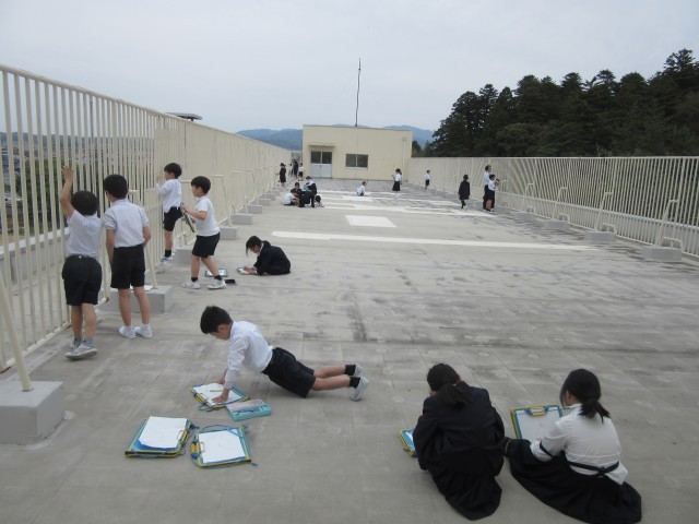 1学期が始まって約10日です。新しい環境にも少しずつ慣れ、子供たちの表情も全体的に柔らかくなってきています。2年生は、生活科で1年生に学校の部屋を紹介するための準備の話し合いをしていました。学校の先輩として紹介する姿がとても楽しみです。3年生は、理科で「あたたかくなるとしょくぶつや生き物はどんな様子かな」を調べるために、クロムブックで写真を撮影したり虫めがねで細かいところまで観察したりしていました。社会科では、どの方角がどんな様子かを調べるために、屋上に出て観察していました。英語では、世界の国の名前と挨拶を知るために、体も動かしながら楽しそうに発音していました。グランドでは、体育で、5年生は陸上を、1年生は大型遊具にチャレンジしていました。図工室では、5年生が、長坂台小学校のいいところを1年生に伝えるために、絵と短い文で表現していました。