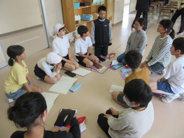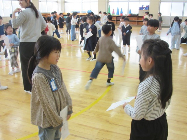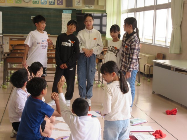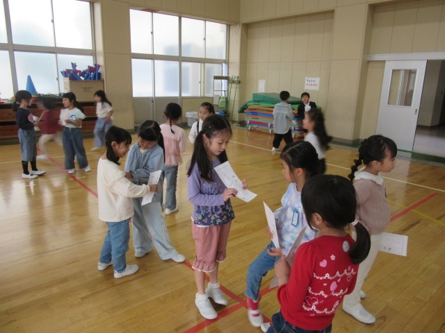 1年生が生活科の学習の時間に、学年全員で「どうぞよろしくの会」をしていました。教室の友達とは先にしたので、それを学年全体に広げてのチャレンジでした。自分からあまり知らない子に声をかけることはすごく勇気のいることですが、がんばって声をかけたり自分のことをはっきりと話したりしっかりと聞いたりしていました。昼休み時間には、運動会の応援団の初顔合わせでした。6年生を中心に話し合いが進んでおり、やる気満々の気持ちが伝わりました。