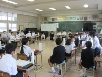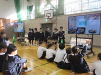 本日は、3年生が総合的な学習の時間に学んだこと・まとめたことを2年生に伝える学年...