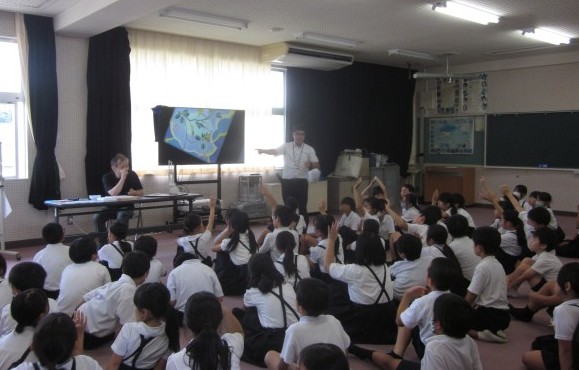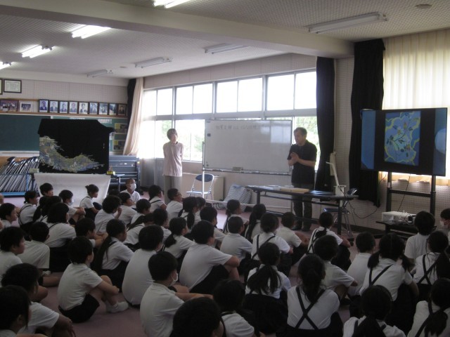 4年生の加賀友禅の学習が始まりました。今日は、加賀友禅作家の平野利明さん、範子さんにお越しいただき、加賀友禅のお話をお聴きしました。加賀友禅の由来や着物の原料となる蚕のお話のほか、平野さんが描いた美しい加賀友禅の着物を見せていただき、本物に触れる機会をいただきました。これから4年生は、図案を考え、加賀友禅に挑戦する予定です。平野さんには、今後もご指導いただき、できるだけ本物に近い形の体験をさせていただく予定です。楽しみですね。