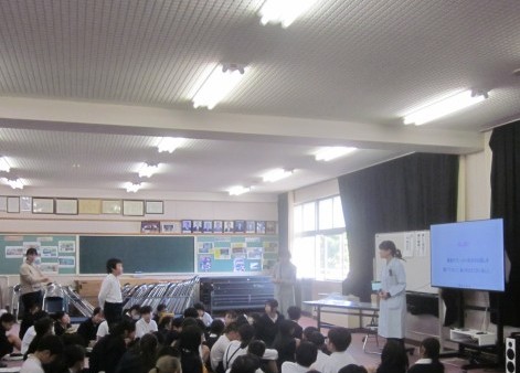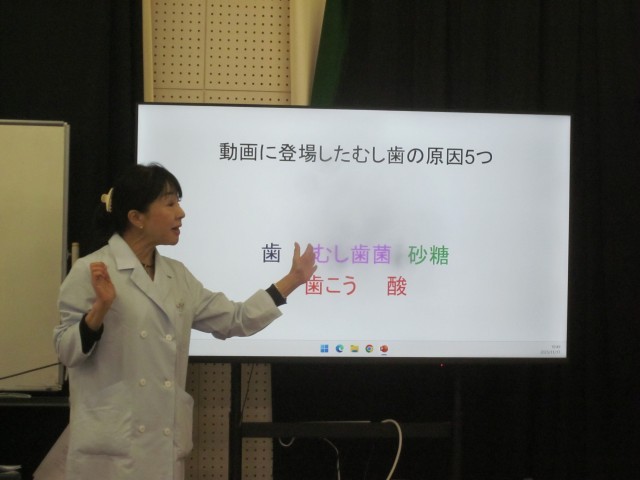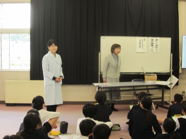 長い人生をしっかり自分の歯で食べ続けるために、歯を健康に保つことはとても大切です。歯の健康について、日本歯科大学の一宮歯科博士に東京からお越しいただき、5年生がお話をお聞きしました。実験では、青と赤のキリシトールガムを60回かみ、咀嚼がしっかりできているかを確認しました。子どもたちは、楽しみながら、歯の大切さをしっかり学んでいました。また、図書館にも本を寄付していただきました。ありがとうございました。