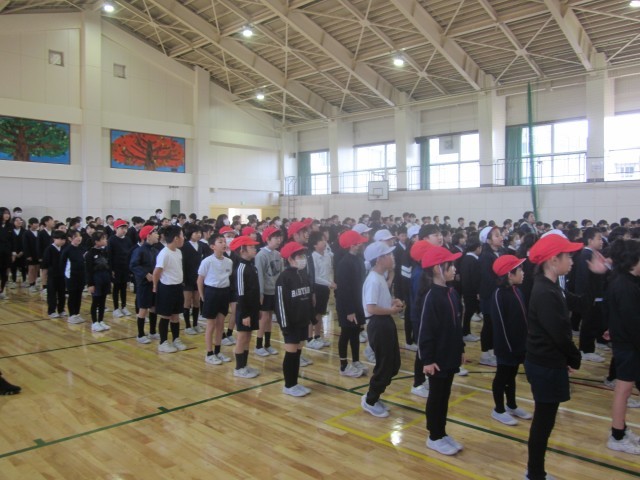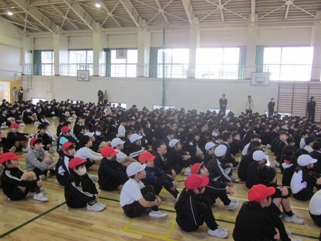 3月の全校朝会を行いました。全校児童があつまる集会は、これが最後になります。これまでに成長したことやまだできていないことなど、1年を振り返り、3月末までの残りの時間を充実させていくよう確認をしました。静かに移動し、しっかり話を聴くことができ、子どもたちの成長を感じました。校歌は、春の部分を歌いました。全校の声がきれいになった体育館に響きわたりました。