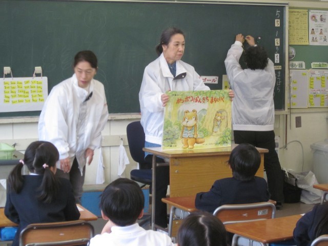 5月1日(木)に、地域の婦人会の皆さんにお越ししただき、1年生への交通安全のお話をしていただきました。例年、1年生の交通事故が全国的に多いこと、お家の人から離れて、自分で登下校する1年生に向けて、交通ルールや道路で注意しなければいけないことなどを紙芝居などでお話してくださいました。ありがとうございました。