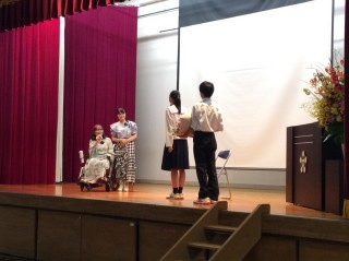 本校を卒業された歌手の井上あずみさんと、娘さんで同じく歌手の侑夕(ゆうゆ)さんに講演をしていただきました。