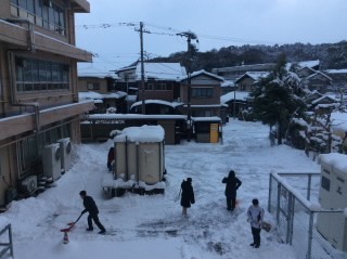 昨日は除雪車も入っていただきましたが、今日は先生方で除雪をして明日以降の学校生活に備えました。