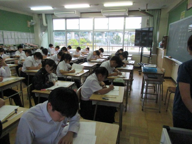 本日、3年生は実力テストに挑んでいます。 夏休みに積み重ねた学習の成果を発揮できるように願っています。一か月後には、いよいよ第1回統一テストや、進路決定に向けて重要な進路説明会が控えています。「学習の秋」が本格化するこの季節、体調を整え、さらなる努力を重ねていきましょう!