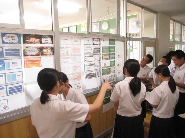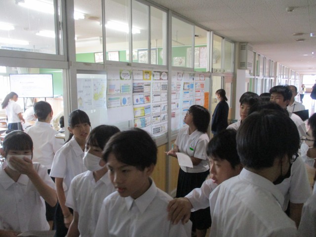 10月6日(月) 2年生総合的な学習の時間「デジタル探究実践(中間面談)中間発表」 公開日 2025/10/06 更新日 2025/10/06 お知らせ 総合的な学習の時間に行っている「デジタル探究学習」の相互評価をしています。他の班の探究学習のシートを見て、自分たちの探究学習に参考になることがあったのではないでしょうか。文化祭当日の発表に向けて、さらに学習を進めてほしいと思います。 +1