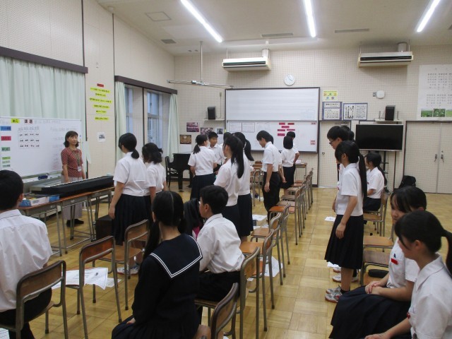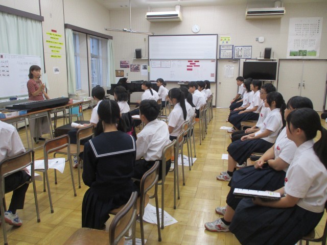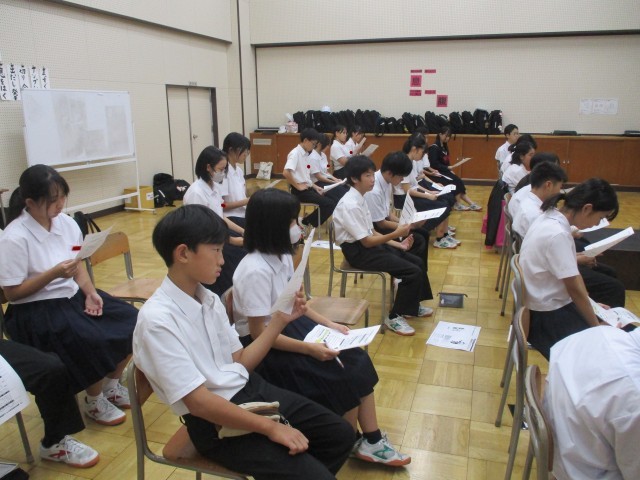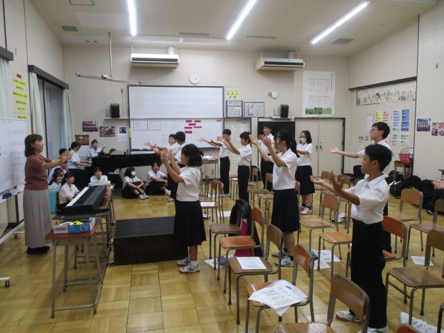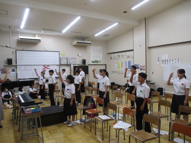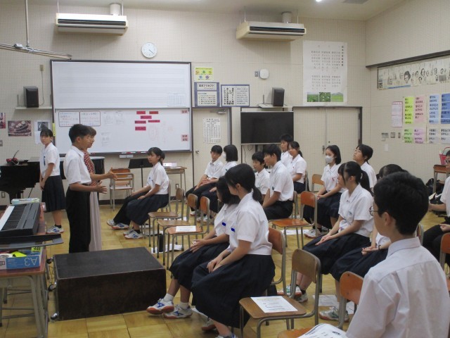 10月8日(水) 指揮者・伴奏者学習会 公開日 2025/10/08 更新日 2025/10/08 学校日記 合唱コンクールで、指揮者と伴奏者をする人が集まって、学習会が行われました。入退場の仕方、礼の仕方、タイミングの合わせ方、強弱のつけ方、とめ方などについて話がありました。どの人も真剣に話を聞いていて、教えてもらったことを自分のものにしようする積極的な姿がたくさん見られました。合唱コンクールまであと20日。少しずつ磨きをかけ、当日をむかえてほしいと思います。 +7