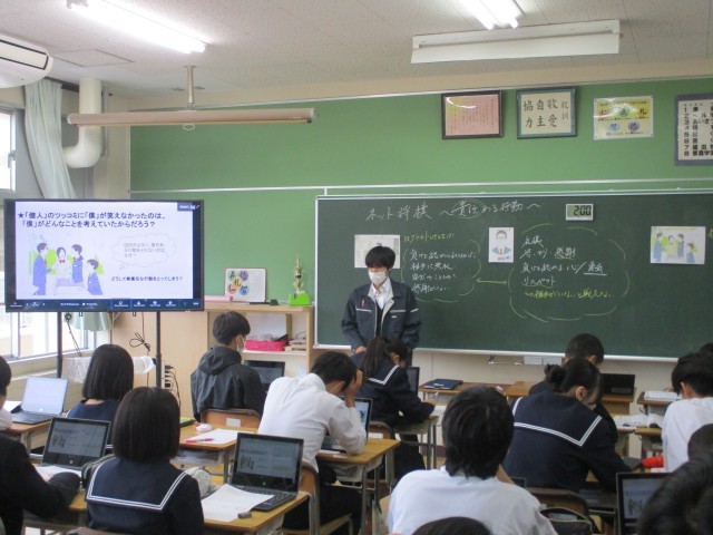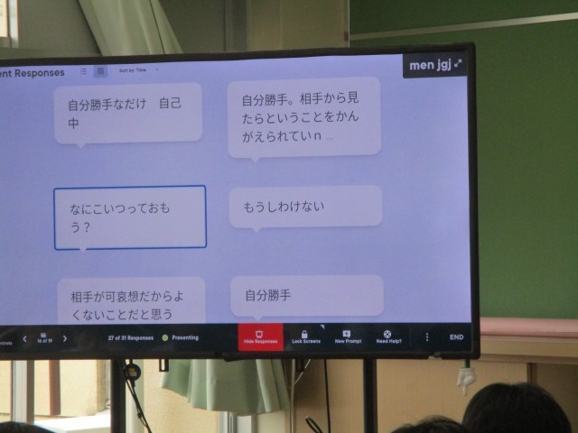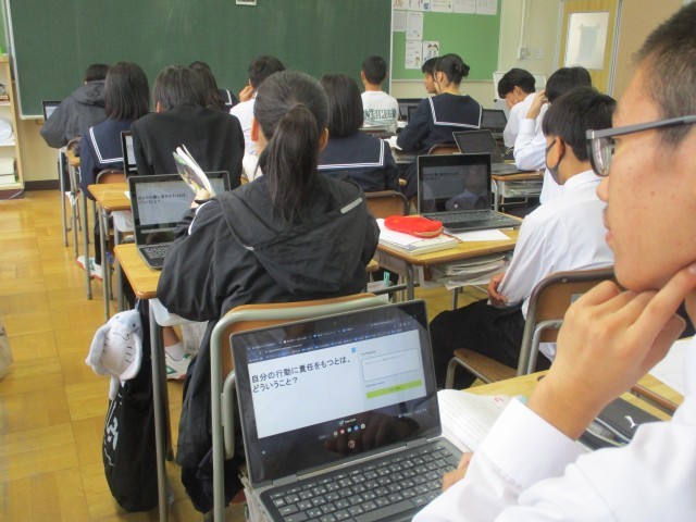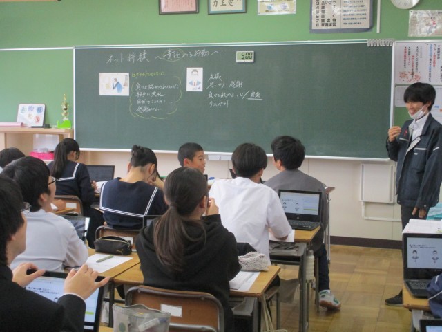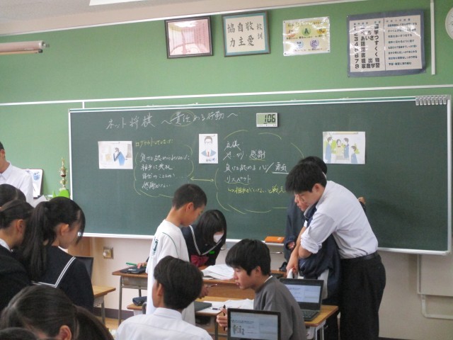 10月22日(水) 2年生道徳「ネット将棋~責任ある行動~」 公開日 2025/10/22 更新日 2025/10/22 学校日記 責任ある行動とは、どんな行動のことをいうのでしょう。ネットで対戦ゲームをしていて、負けそうになると勝手にログアウトして対戦をやめてしまったという経験はありますか?対外試合で相手に対して心の底から「おねがいします」「ありがとうございました」と言っていますか?など、具体的な場面をイメージし、自分の行動はどうだろうかと考えています。 +7