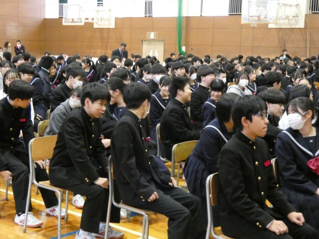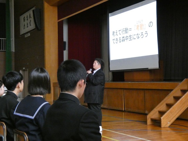 校長先生や各先生から整理整頓の大切さや、定期テスト後から冬休みにかけて学習では何を頑張れば良いのかお話がありました。