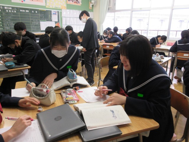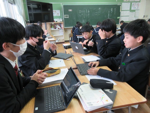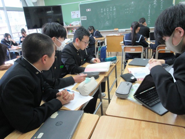 1月20日(火) 2年生国語科〈メロスは勇者と呼べるか否か〉 公開日 2026/01/20 更新日 2026/01/20 学校日記 ディベートをするための意見をまとめています。賛成の立場で参加するとしたらどんな意見を出すか、反対の立場で参加するとしたらどんな考えで相手を説得するか。相反する立場の考えをどちらも考えるのは、簡単なことではないかもしれません。でも、内容について深く考えてみるという点では、とてもいいことだと思います。 +3