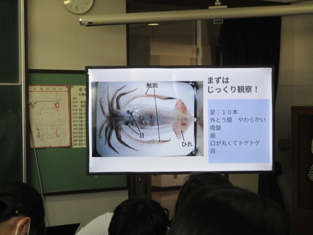 丁寧に作業をして、各部位を取り出しています。普段はおいしくいただいているイカですが、いざ観察してみると、気づくことがたくさんありました。