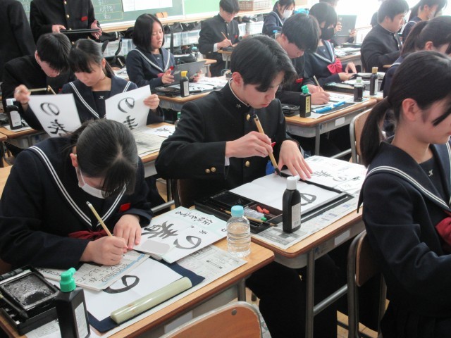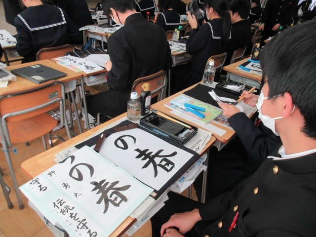 書初めの練習をしています。今日は「○○○の春」です。ひらがなを書くのは難しいと思いますが、その中でも「の」はさらに難しい。しかし、どの人もバランスを意識して丁寧に「の」を書いていました。「○○○の春」の完成が楽しみです。ところで、あなたなら「○○○」の部分に何を入れたいですか。