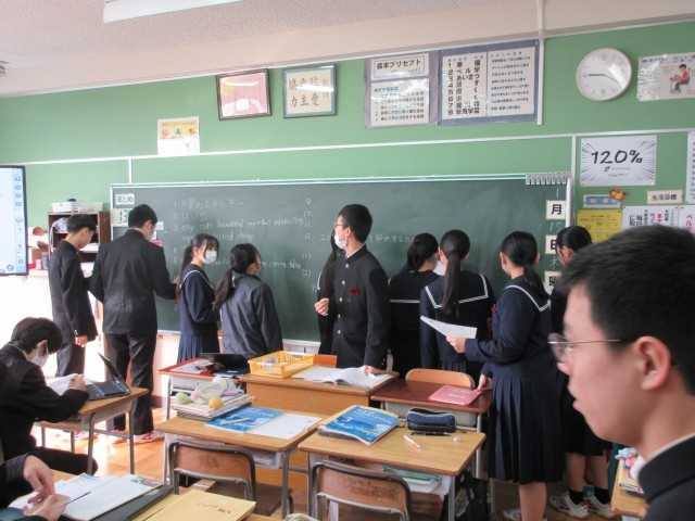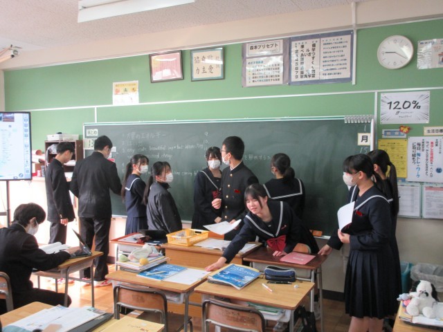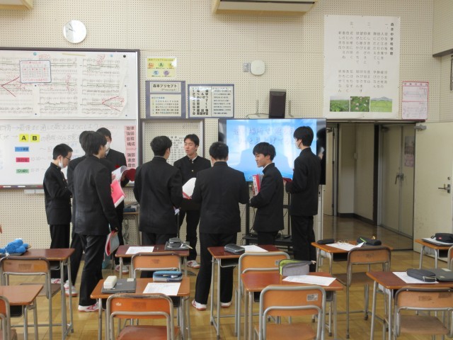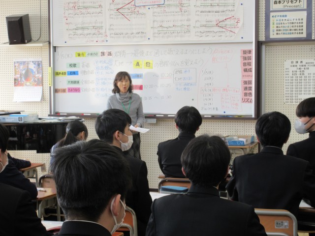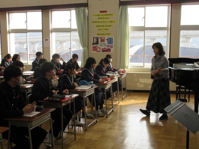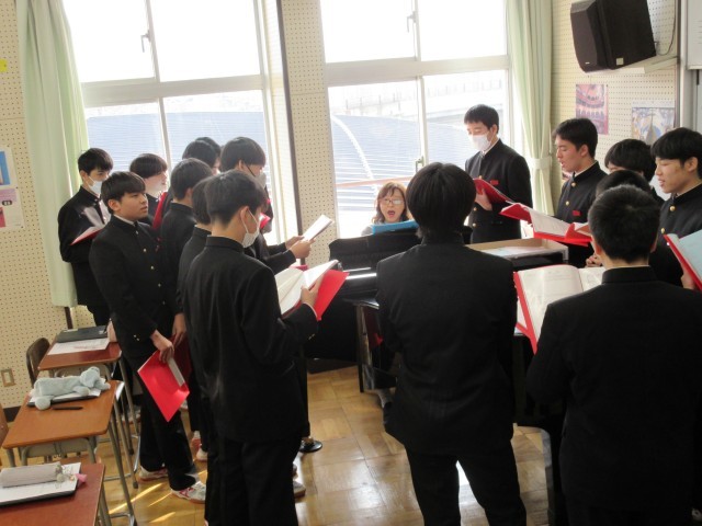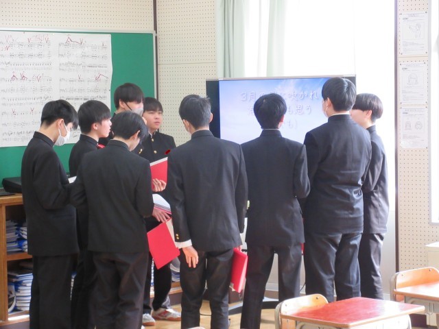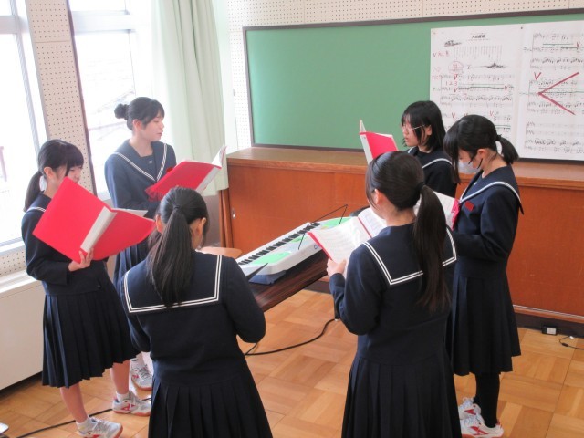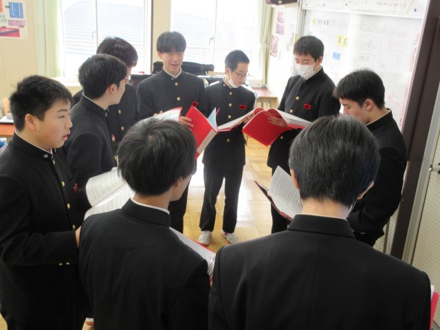 卒業式に向けて、合唱の練習をしています。すごいと思ったのは、各パートに分かれて練習をしたとき、誰一人として集中を途切れさせることなく、声を出して歌っていたことです。「ラララからの盛り上がりが大切だから・・・」と何度も繰り返し練習した成果は、必ず本番で発揮されることと思います。3年生にとっての中学校生活、まだ2ヶ月あります。今できること、精一杯取り組んでください。