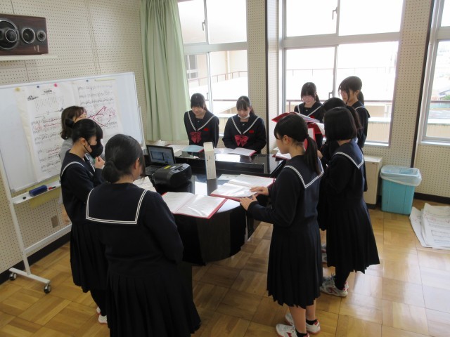 いよいよコンクール直前。本日、3年生の合唱リハーサルが行われました。