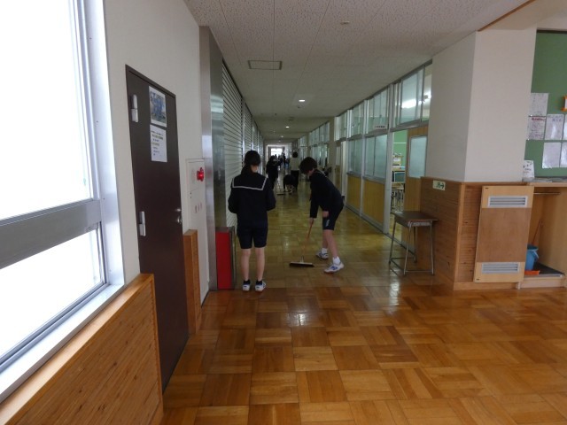 4階フロアを掃除する1年生の様子を紹介します。入学から時間が経ち、手際もすっかり良くなりました。