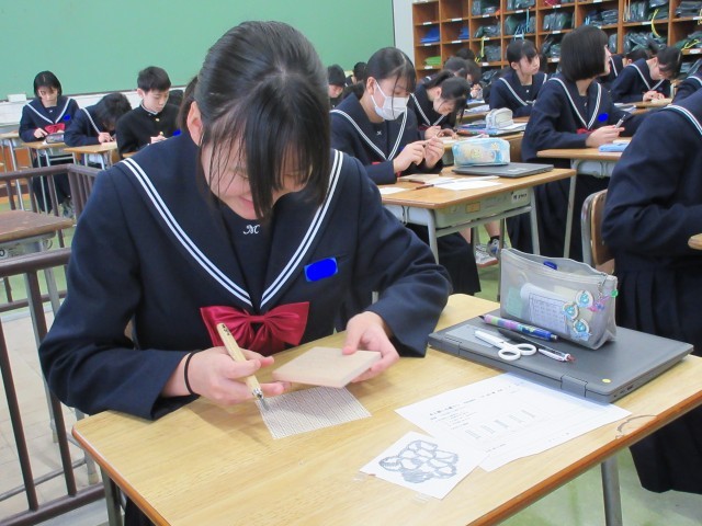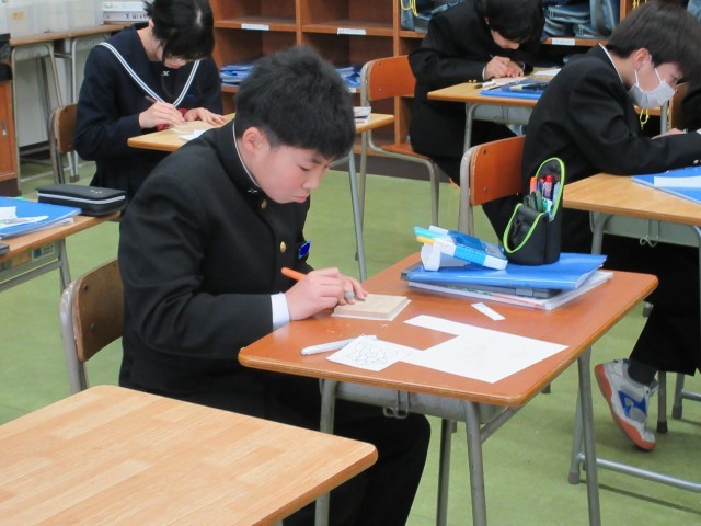1月20日(火) 1年生美術科〈浮き彫りってどう彫るの?〉