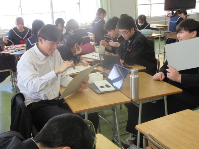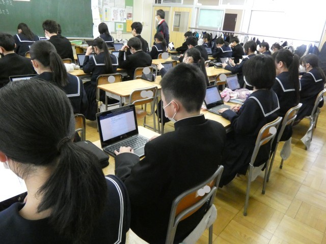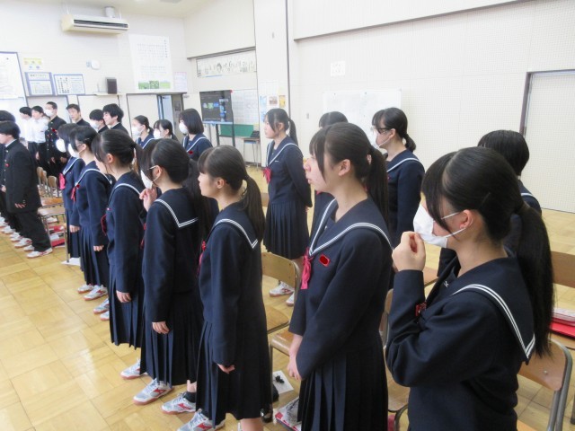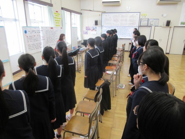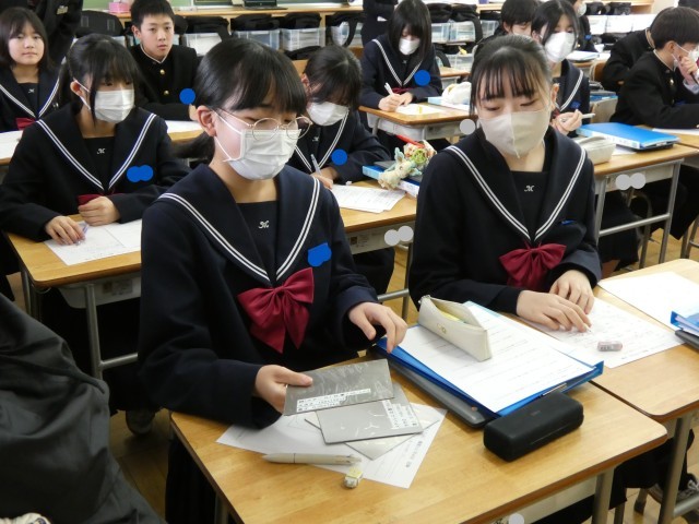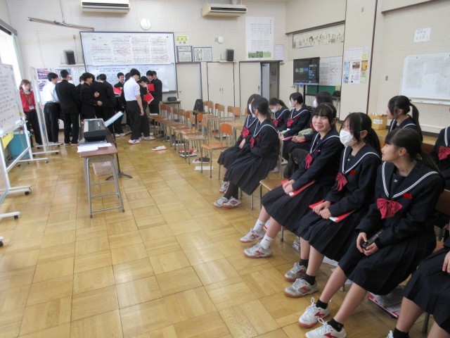 3年生にとって、中学校最後の授業となる「卒業式」での合唱を練習しています。仲間とともに表情豊かに合唱しようという意気込みが伝わってきました。卒業したあと、この歌を聞く時がきっとあると思います。その時に、一緒に歌った仲間のことを鮮明に思い出すことができるよう、今は思いっきり練習してくださいね。