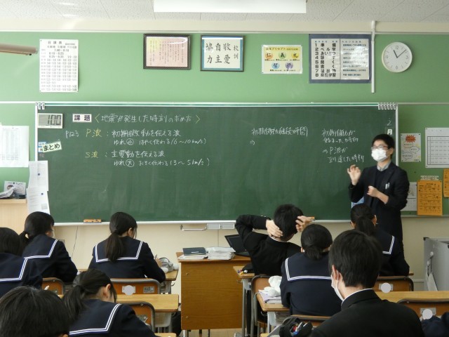 2月12日(木) 1年理科 「地震が発生した時刻の求め方」